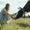 Woman feeding cow