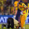 A fan interrupted the match to touch MS Dhoni's feet