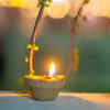 ![Peaceful diya flame near Holy Basil]()