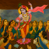 Krishna lifting Govardhan Hill