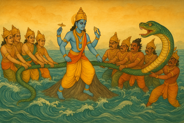 The Churning of the Ocean with Serpent Vasuki